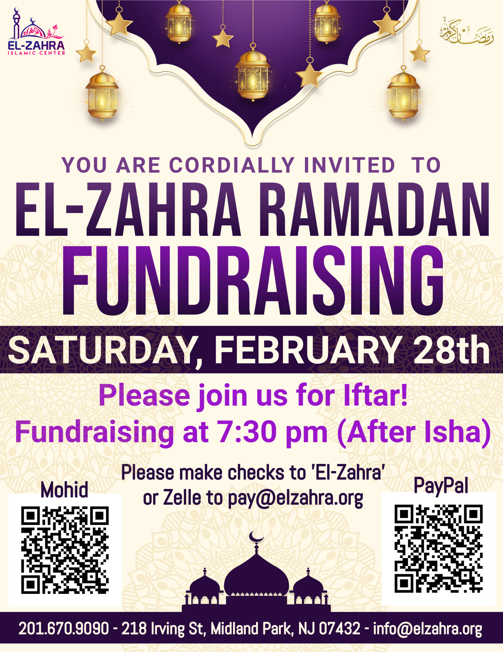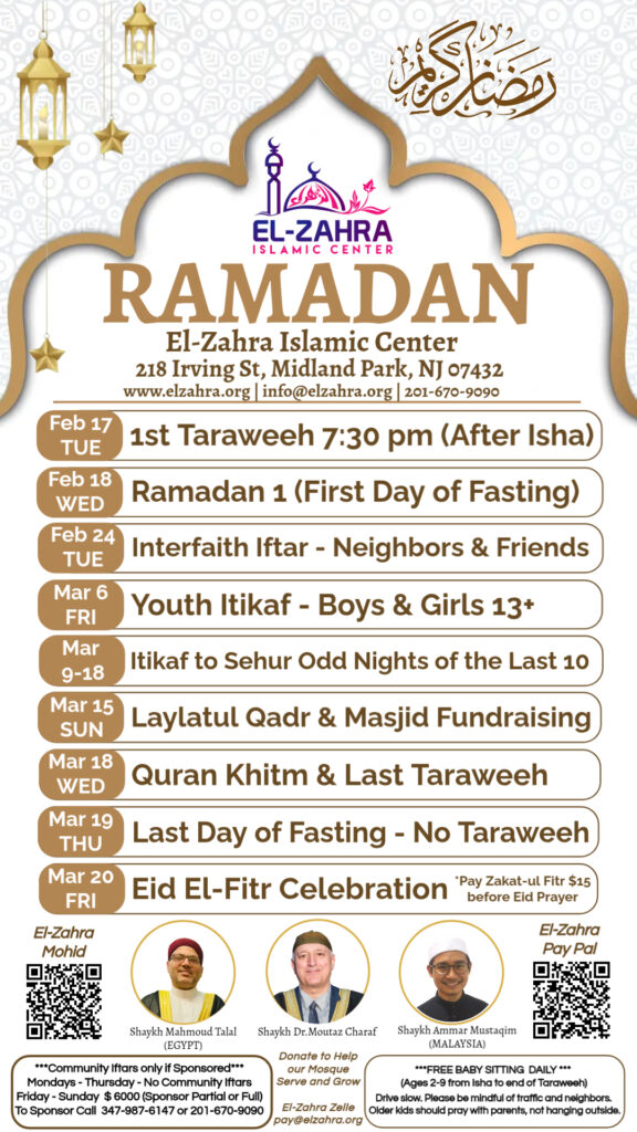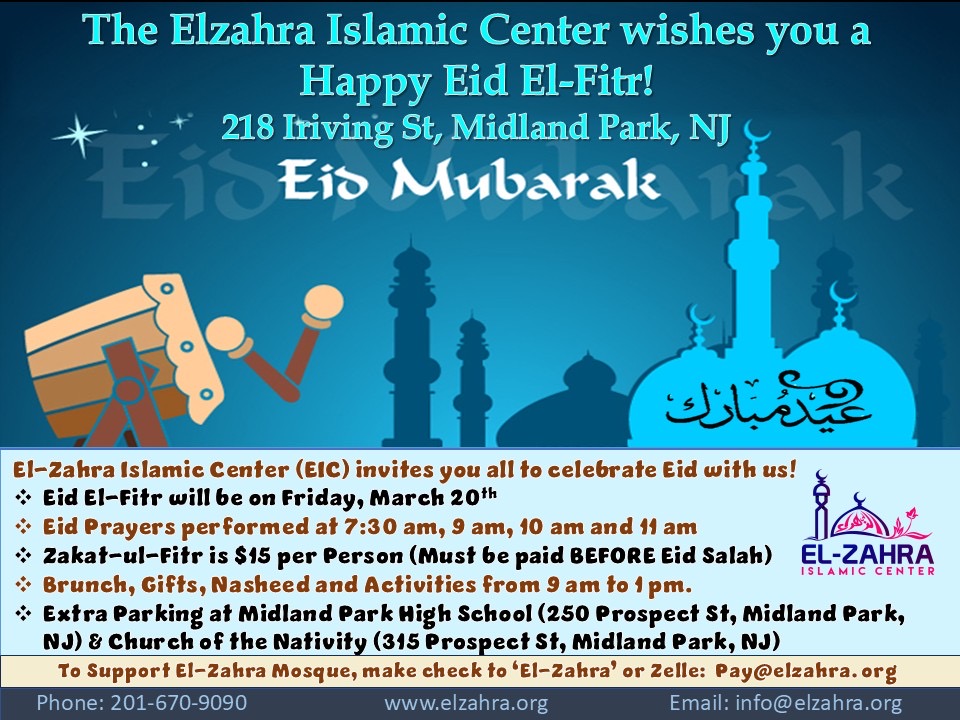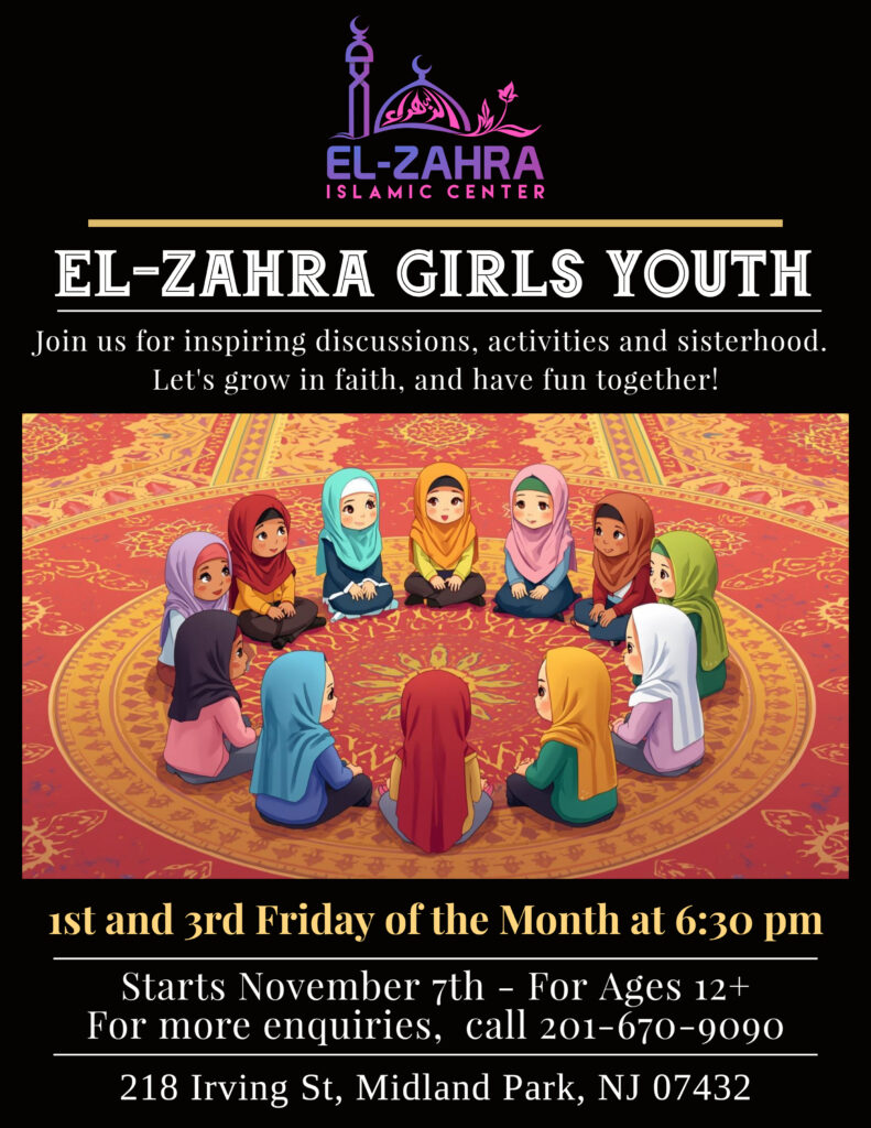 Welcome to the El-Zahra Education Foundation Website. Here you will find information regarding all of our services and activities, including the latest information on our Hidaya Saturday School, and any functions at our El-Zahra Islamic Center (EIC) in Midland Park, NJ.